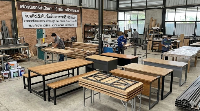 รับผลิตโต๊ะพับ/โต๊ะโรงอาหาร/โต๊ะจัดเลี้ยง/โต๊ะทำงาน/โต๊ะประชุม ตามแบบหรือขนาดพิเศษ เลือกวัสดุหน้าโต๊ะ สีขา และสเปคความหนาได้ เหมาะกับงานโรงเรียน โรงงาน อีเวนต์ และโครงการ